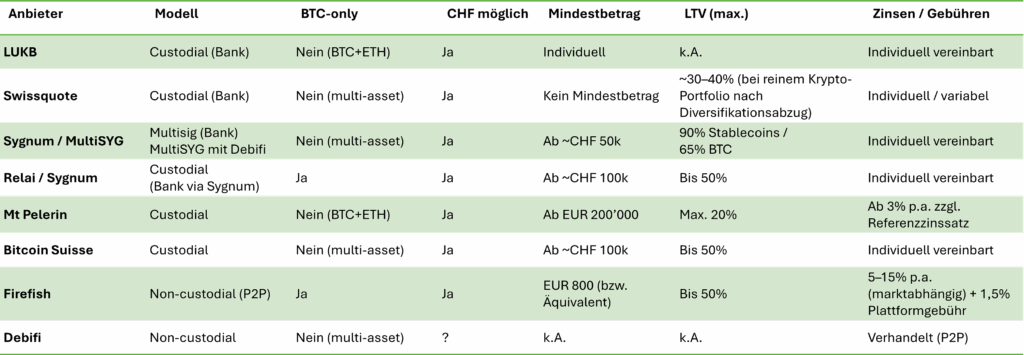 Eine Auswahl der aktuelen Krypto-Lombard Angebote.